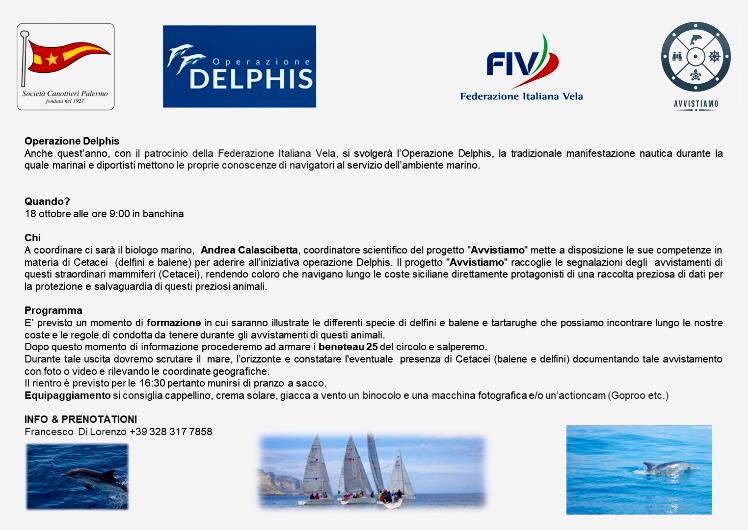 Anche quest’anno, con il patrocinio della Federazione Italiana Vela, si svolgerà l’Operazione Delphis, la tradizionale manifestazione nautica durante la quale marinai e diportisti mettono le proprie conoscenze di navigatori al servizio dell’ambiente marino.